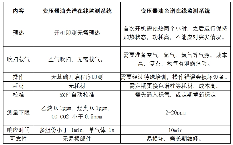 变压器油光谱在线监测系统与传统油色谱在线监测系统对比