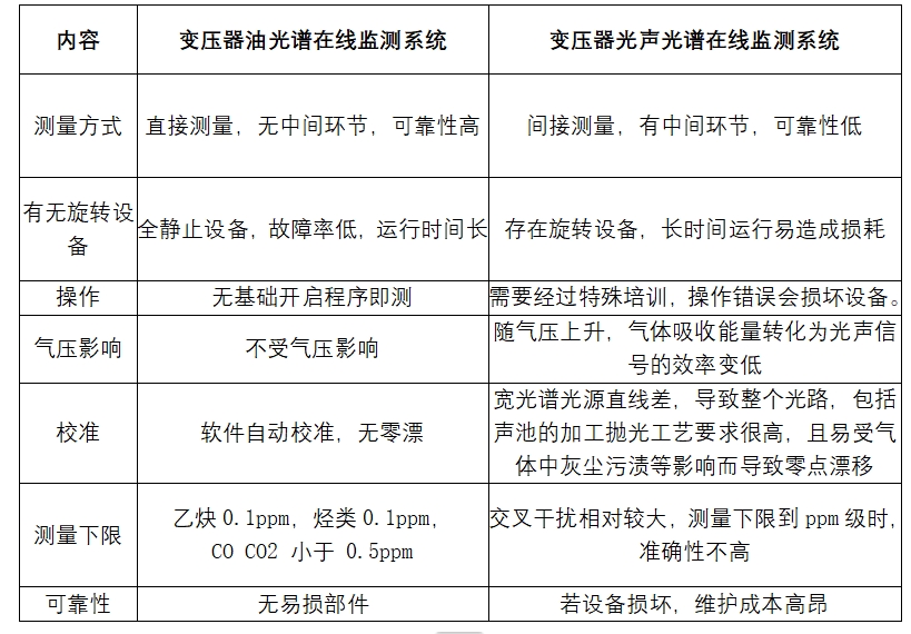 变压器油光谱在线监测系统与光声光谱在线监测系统对比