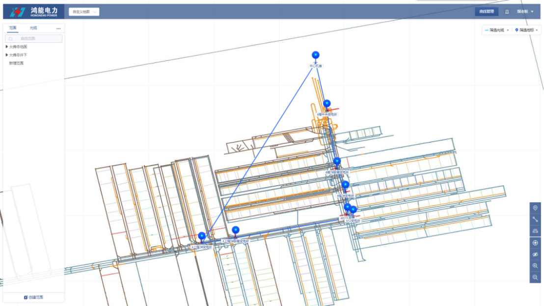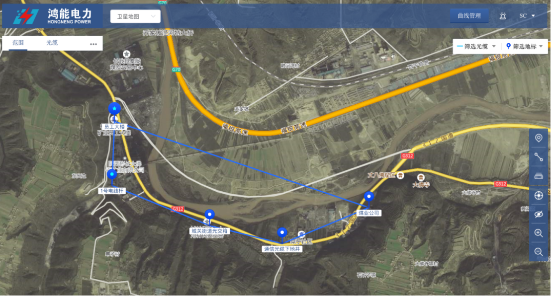 当光纤发生异常时,配合系统自带的GIS地理位置信息分析功能,准确判断出故障点具体位置。 该系统支持室外地图,井下及室内CAD地图,可实现同屏,随时切换功能,可为大容量传输光纤系统提供可靠的安全保障。